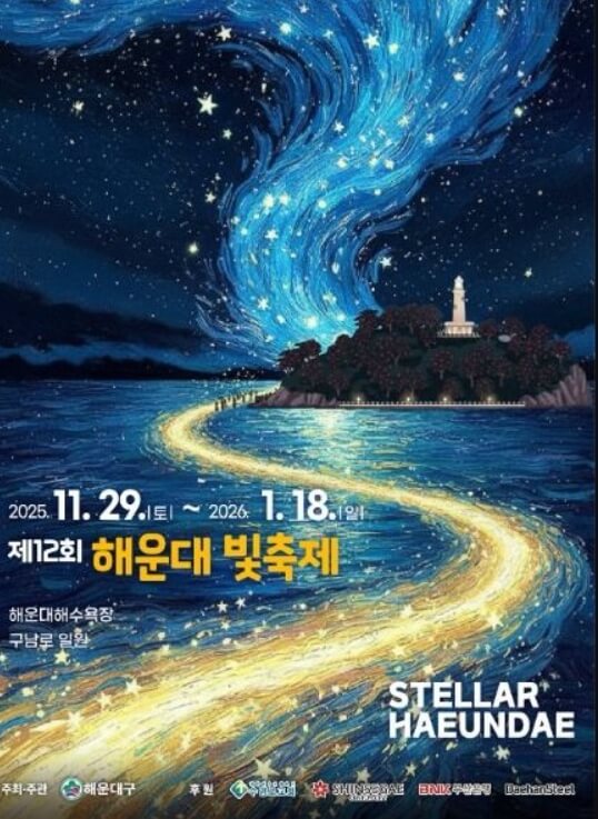 해운대 빛축제는 는는 매년 겨울 부산 해운대에서 열리는 대표적인 야간 경관 축제로, 해운대 해수욕장과 구남로, 해운대광장 일대를 수십만 개의 LED 조명과 빛 조형물로 수놓습니다. 바다·도시·빛을 조화롭게 담은 테마 연출과 포토존, 빛 터널이 환상적인 야경과 로맨틱한 산책을 선사하며, 무료 관람과 편리한 접근성으로 겨울 부산 여행의 필수 코스로 사랑받고 있습니다. 부산 해운대 빛축제의